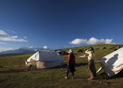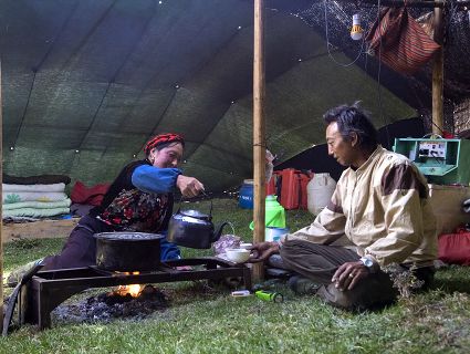 悄然而至的晨曦,隱藏著太古未盡消遁的光芒。揚天的旌旗纏成不倒的箭桿,曾經(jīng)的故事還沒走出夢中。草原的安謐,輕輕地撫慰著平靜的牛群。奶香已浸漫晨的清新中,擠奶的姑娘臉頰已鍍上了紅霞的光暈。天地間的沉靜,只等待著第一聲牛哞的響起……草原的清晨,朝陽光臨的一刻,酥油和奶汁的淳香會醉倒那一片草色碧透的天地。