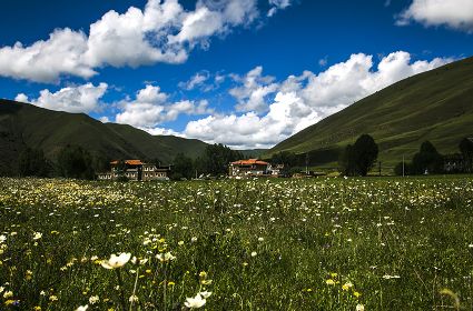 阿須草原,肅穆中的滄桑神秘。雅礱江源頭的世紀歌韻,青稞間回蕩的輕吟,飽含著世事席卷歲月與生命的贊歌。挺立于藍天下的英雄塑像,將史海中起伏的頌歌,融入艷陽移動的光輝中。我長久駐足仰望,沉緬于歷史的風(fēng)塵,英雄號角吹奏的激情從逝去的歲月中傳出,經(jīng)久不息。早晚盤旋于草崗叢野的驟風(fēng),讓草叢的搖動和河柳的起伏都隱蘊著刀光箭簇的頌歌。靜聲聆聽,激越的蹄音正從天邊遙遙傳來。