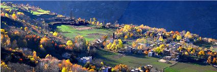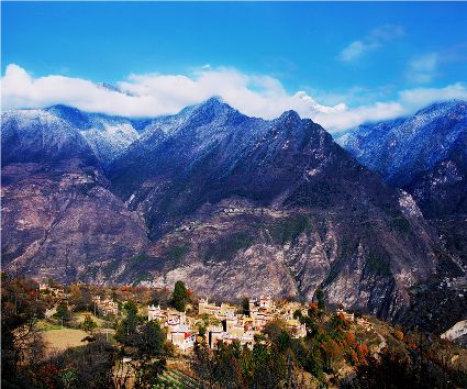 金秋,山寨呈現(xiàn)出一派多彩的畫面,樹葉漸次褪綠,漸染紅色,山頂是皚皚白雪,將田園牧歌式的畫卷展示在人們眼前。
