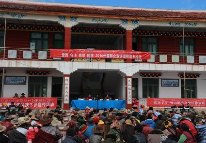 在此次宣講活動中,我州建立了州、縣、鄉(xiāng)、村“四級”宣講網(wǎng)絡(luò),將群眾宣傳教育與群眾工作全覆蓋、法治甘孜、創(chuàng)建全國民族團(tuán)結(jié)進(jìn)步示范州等活動有機(jī)結(jié)合,突出主題宣講,注重特色宣講和典型宣講,創(chuàng)造性地啟用了“草根宣講員”以及面對面“1+N”宣講,派會當(dāng)?shù)卣Z言的宣講老師進(jìn)行宣講,形成了層次分明、重點(diǎn)突出的立體宣講體系,實現(xiàn)了從剛性宣教向柔性宣教、從說教向寓教、從蜻蜓點(diǎn)水向潛入內(nèi)心的“三個轉(zhuǎn)變”。