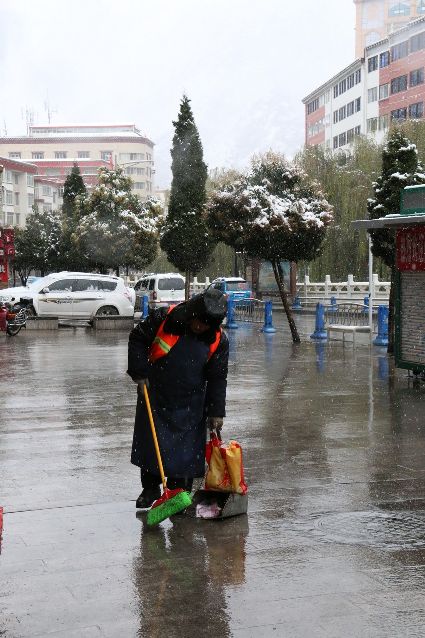 交警在忙碌,然而,我們的環(huán)衛(wèi)工也沒(méi)有歇著,無(wú)論是將軍橋、康定賓館、彩虹橋、下橋還是東關(guān)、北門,都有環(huán)衛(wèi)工人們的身影,他們不停的為這座美麗的城市清潔,讓人們感受到舒適空氣和美景。