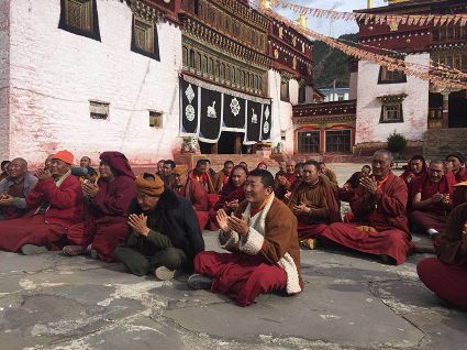 當宣講組一行來到郭沙寺時,寺廟僧人們早已迫不及待的等候在寺廟外?!奥犝f你們今天要來,我們全寺上下都很高興、很期待?!彼聫R堪布甲它激動地說。