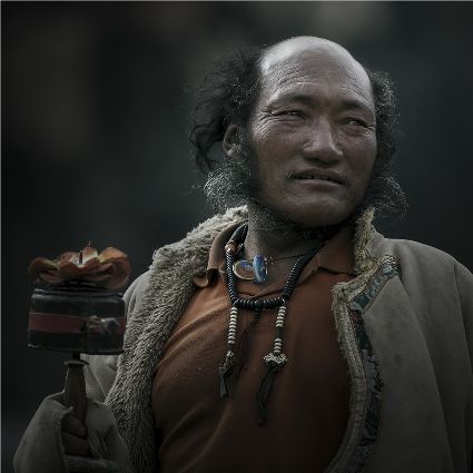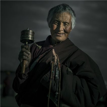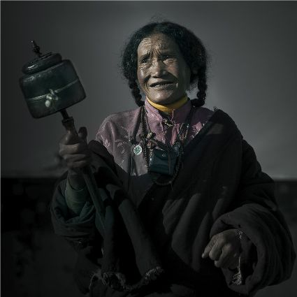 每當我手持相機時,對他們始終懷有一種敬畏,我捕捉到他們眼神里流露出虔誠??粗?jīng)筒上“甲多”的飛轉(zhuǎn),我陶醉了,醉在那轉(zhuǎn)經(jīng)筒的旋轉(zhuǎn)舞動,醉在那轉(zhuǎn)經(jīng)筒傳誦的故事,醉在那一張張手持轉(zhuǎn)經(jīng)筒的面孔,還有,還有因祈禱音符助推而從未停止的轉(zhuǎn)經(jīng)筒……