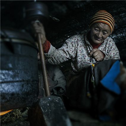 我聽完老人的講述,心頭很震憾。心想我一定用手中的相機好好地記錄下手持轉(zhuǎn)經(jīng)筒的人們。
