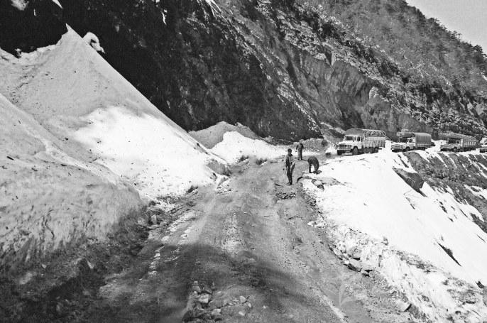 這是對(duì)二郞山公路的真實(shí)寫(xiě)照,詮釋這歌謠的,不僅有沿途祭祈亡靈的經(jīng)幡,還有那些橫臥荒草溝澗的車(chē)輛殘骸。