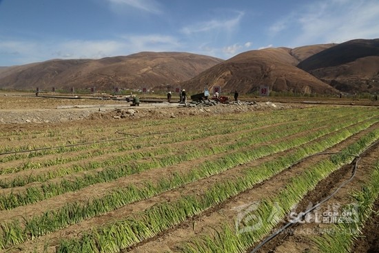 本網(wǎng)訊(張德禧 徐登林) “3月份,我家的9畝土地就流轉(zhuǎn)給農(nóng)場(chǎng)了,每畝每年630元,我每月在大蔥基地打工有2000元收入,老公出去務(wù)工,一家人一年的收入增加還學(xué)到技術(shù)?!?/span>5月16日中午,道孚縣陽(yáng)光燦爛,照耀著高原漸綠的青草,也喚醒了田野里變青的蔥苗,48歲的麻孜鄉(xiāng)溝爾普村村民青芝翁姆在大蔥基地邊澆水邊說,大蔥再有一個(gè)多月就能上市了。