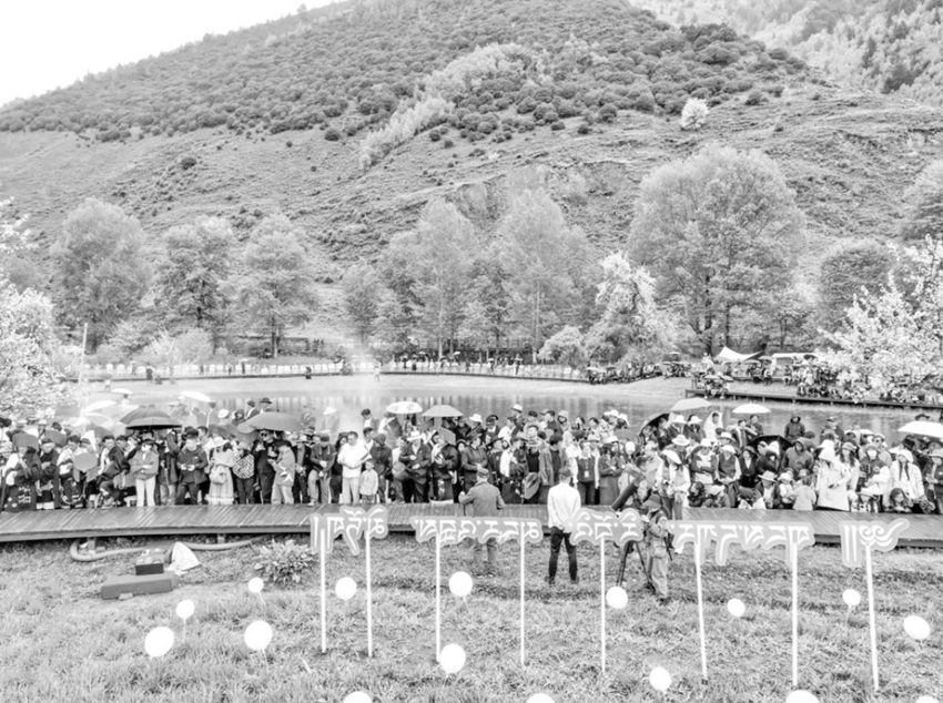 活動現(xiàn)場,悠揚(yáng)的樂聲自林間傳來,沿著步道往深處走去,一場特別的演奏會正在進(jìn)行,枝頭海棠盛放,樹下游人如織,鋼琴、大提琴、笛子等各色樂器奏出的曲調(diào)在貢嘎海棠的映襯下更顯別樣風(fēng)味。來自西安的韓先生細(xì)細(xì)聆聽木雅傳統(tǒng)非遺口弦的演奏后不禁感嘆道,“太美了!這個活動將音樂與貢嘎海棠花海巧妙融合,讓我感受到一種別樣的人與自然共生的和諧?!?/span>