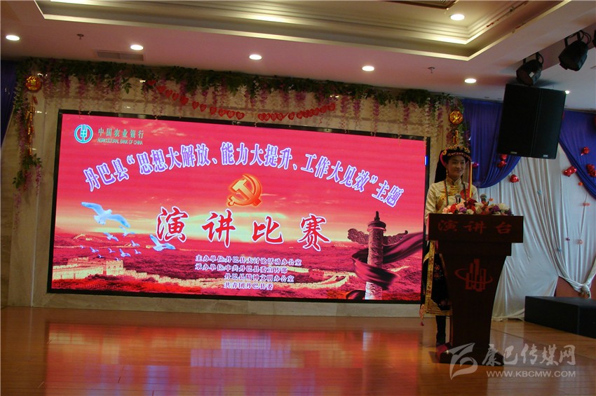 本網(wǎng)訊(楊全富)4月24日,由丹巴縣大討論活動辦公室主辦,縣委宣傳部、縣精神文明辦、共青團縣委承辦的 “思想大解放、能力大提升、工作大見效”主題演講比賽開賽。11名來自各條戰(zhàn)線的干部職工參加了本次比賽。圖為比賽現(xiàn)場。