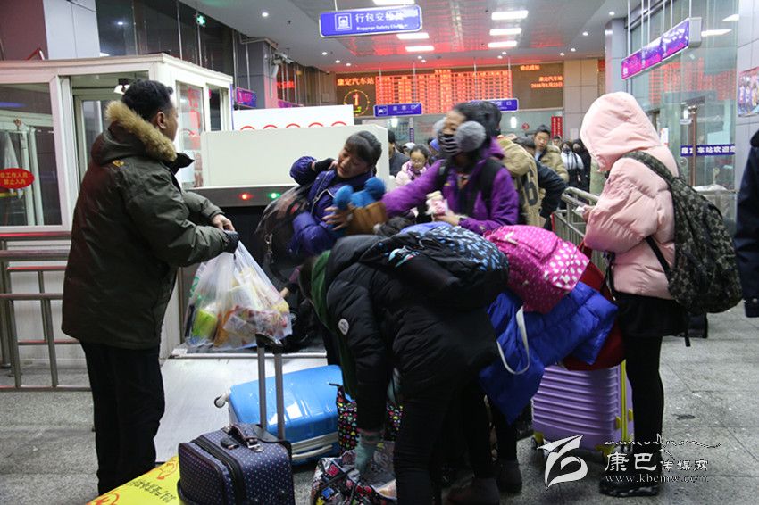23日晚,康定下了一場鋪天蓋地的大雪,氣溫驟降,但這并沒有影響人們對回家的渴望。記者一進汽車站就看見購票窗口、行李檢查口、車票驗核口井然有序的排滿了購票的旅客。