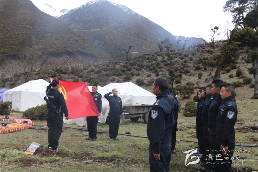 “我志愿加入中國共產(chǎn)黨,擁護黨的綱領,遵守黨的章程,履行黨員義務,執(zhí)行黨的決定,嚴守黨的紀律,保守黨的秘密,對黨忠誠,積極工作,為共產(chǎn)主義奮斗終身。”在建黨95周年之際,九龍縣海拔4800米的熱枯蟲草采集點熱鬧非凡,村民正忙著采挖蟲草,20名駐地執(zhí)勤民警在局長的帶領下,舉行了一場別開生面的重溫入黨誓詞活動,那一聲聲錚錚誓言響徹在雪山上空。