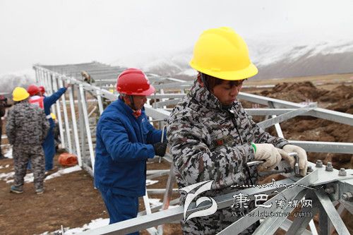 石渠縣海拔高,長冬無夏,空氣含氧量僅為成都平原的45%,電力建設(shè)面臨著“高原高寒缺氧、生態(tài)環(huán)境脆弱、凍土區(qū)沼澤區(qū)施工”等世界性難題。在這里走路稍微快一點都要大口喘氣,更何況在高山雪地上施工,搬運(yùn)建材,其施工難度可想而知。石渠至洛須110KV工程是國網(wǎng)成都供電公司承擔(dān)“電力天路”工程項目中唯一一條110kV電壓等級線路工程,是連接石渠變電站和在建的110kV洛須變電站的主要電力通道,線路全長為64.268km,新建鐵塔187基,沿線海拔高度為3300~4800m,線路多在雪山脊梁及斜坡走線。4月的石渠高原,依然是冰天雪地,寒風(fēng)呼嘯,在石渠至洛須110KV線路87基塔基澆筑現(xiàn)場,這里海拔4500多米,然而這里卻是一片熱火朝天的場景,一頂頂黃色安全帽下,急促呼吸冒出的熱氣讓每一個人的面目更加模糊?,F(xiàn)在內(nèi)地正是春暖花開,春意盎然的季節(jié),而我們的施工現(xiàn)場確實冰天雪地,為了讓廣大農(nóng)牧民早日用上電,四川電建工人們克服高寒、缺氧等惡劣自然條件,正在抓緊施工。110kV線路有的建設(shè)段施工人員靠相互扶持摸索上山,有的施工點一個來回要走6個多小時,材料、工器具都必須靠驢隊及索道運(yùn)輸。為了搶工期節(jié)約時間工程建設(shè)者克服嚴(yán)重的高寒缺氧等惡劣的自然條件吃住在雪山上,累了、呼吸困難時吸口氧,渴了吃一把身邊的“雪糕”。到今年4月30日,“電力天路”石渠境內(nèi)工程進(jìn)度已完成工程總投資的40%。