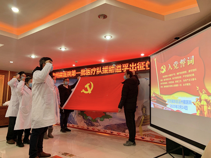 事實證明,州藏醫(yī)院的擔心和提前準備完全是必要的。2020年2月,道孚縣爆發(fā)疫情,全縣進入管控狀態(tài)??粗约旱募亦l(xiāng)發(fā)生疫情,州藏醫(yī)院的醫(yī)護人員心急如焚。盡管對這未知的病毒心中沒底,但沒人退縮,全院上下皆積極請戰(zhàn)。在醫(yī)院黨委再次申請下,州抗疫指揮部研究同意了藏醫(yī)院參與抗疫工作,2月14日,在時任副院長、主任藏醫(yī)師江吉村的帶領下,藏醫(yī)診療隊奔赴道孚。這是新中國成立以來,藏醫(yī)首次參加的大型抗疫阻擊戰(zhàn)。