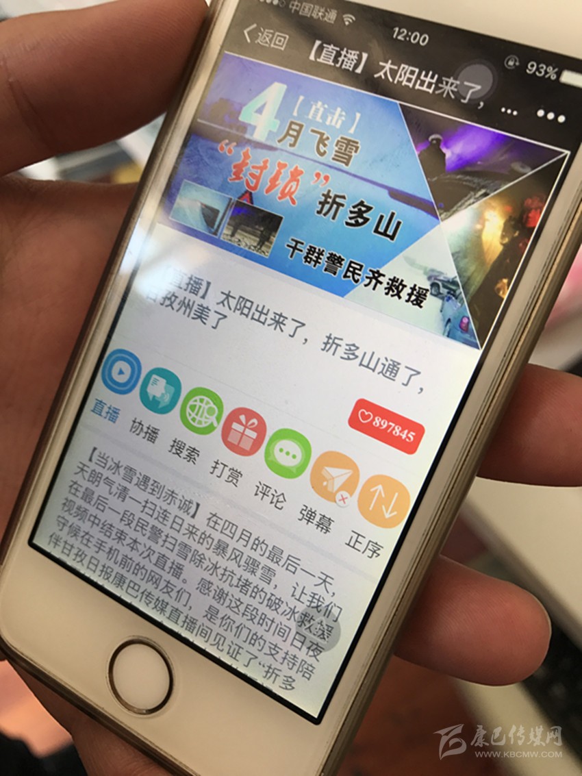 5月2日,隨著5.1小長(zhǎng)假結(jié)束,甘孜日?qǐng)?bào)對(duì)折多山突降大雪、引發(fā)交通堵塞的立體式報(bào)道告一段落,作為突發(fā)災(zāi)害性天氣,甘孜日?qǐng)?bào)行動(dòng)迅速,傳統(tǒng)媒體、掌上直播、康巴微信、甘孜發(fā)布等全媒體齊上陣,掌上直播《4月飛雪“封鎖”折多山,干群警民齊救援》,以其即時(shí)消息、圖片、視頻等海量信息,引發(fā)點(diǎn)擊“狂潮”,不到兩個(gè)小時(shí),點(diǎn)擊量即超過35萬(wàn)人次,至小長(zhǎng)假結(jié)束,點(diǎn)擊量近百萬(wàn)人次;康巴傳媒微信《4月飛雪,千人馳援》點(diǎn)擊量超12萬(wàn)人次;甘孜日?qǐng)?bào)社對(duì)折多山大雪現(xiàn)場(chǎng)立體交叉式直播被新華社、中國(guó)新聞網(wǎng)、華西都市報(bào)封面新聞、網(wǎng)易新聞?lì)l道等州外媒體分別轉(zhuǎn)載或引用相關(guān)報(bào)道。我州應(yīng)急措施有力、有序,得到眾多媒體和網(wǎng)友紛紛點(diǎn)贊。州委常委、宣傳部長(zhǎng)相洛稱贊甘孜日?qǐng)?bào)在這次直播中,行動(dòng)迅速、引導(dǎo)有力,既客觀報(bào)道了突發(fā)性災(zāi)害天氣對(duì)我州交通和旅游帶來(lái)的不利影響,更突出報(bào)道了我州和康定市采取的各項(xiàng)應(yīng)急措施,是一次媒體融合的有益嘗試。