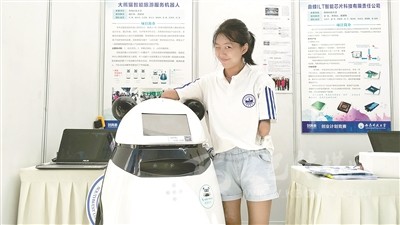 許方燕和隊(duì)員在創(chuàng)青春決賽自己展位前合影。